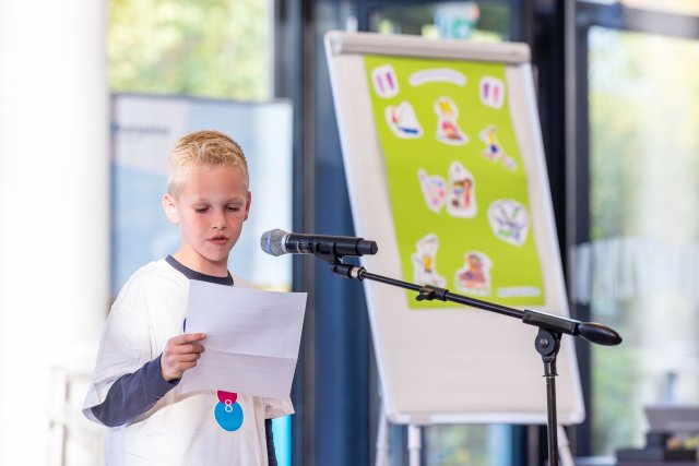 Elf leerlingen van diverse basisscholen presenteerden donderdagmiddag hun plannen aan de jury. Na de eerste inspirerende en creatieve pitches volgde een tweede ronde: de drie beste kandidaten kregen de opdracht om ter plekke een welkomstwoordje voor de Sinterklaasintocht te maken en voor te dragen. Zo werden hun creativiteit en lef flink op de proef gesteld.