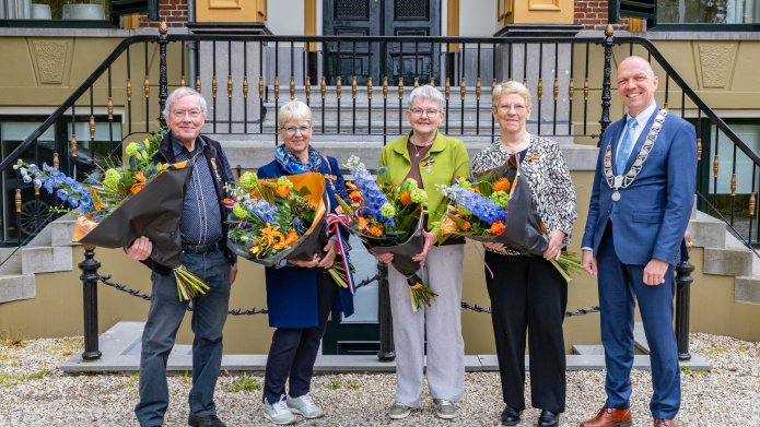Burgemeester Jouke Douwe de Vries reikte vrijdag 24 april 2026 vier Koninklijke onderscheidingen uit in de gemeente Achtkarspelen. ’s Ochtends verraste hij de decorandi thuis en nodigde hij hen uit voor de ceremonie later op de ochtend.