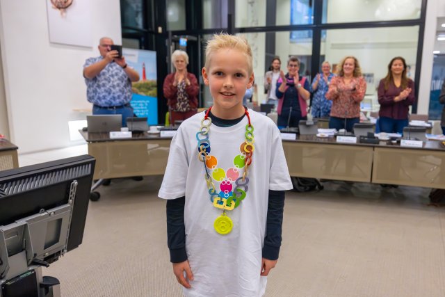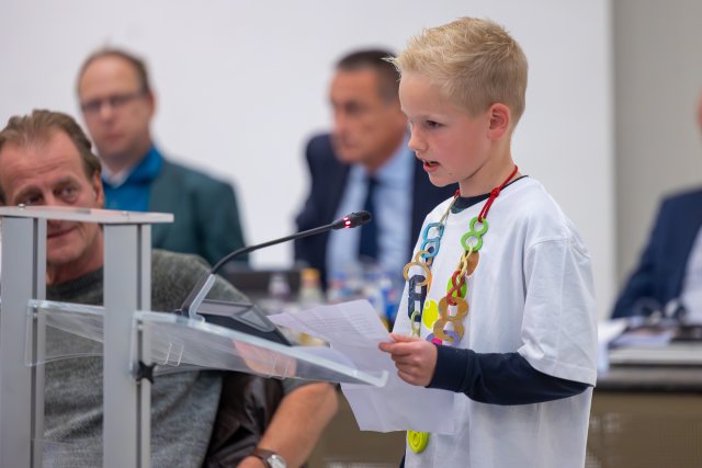 Donderdagavond 6 november werd de nieuwe kinderburgemeester van Achtkarspelen, Niek van der Molen uit Buitenpost, officieel geïnstalleerd. Dit gebeurde tijdens de raadsvergadering in het gemeentehuis van Buitenpost. Niek, leerling van basisschool De Mienskip, volgt Jildau van der Meulen uit Twijzel op. Zij mocht de ambtsketen aan hem overhandigen.